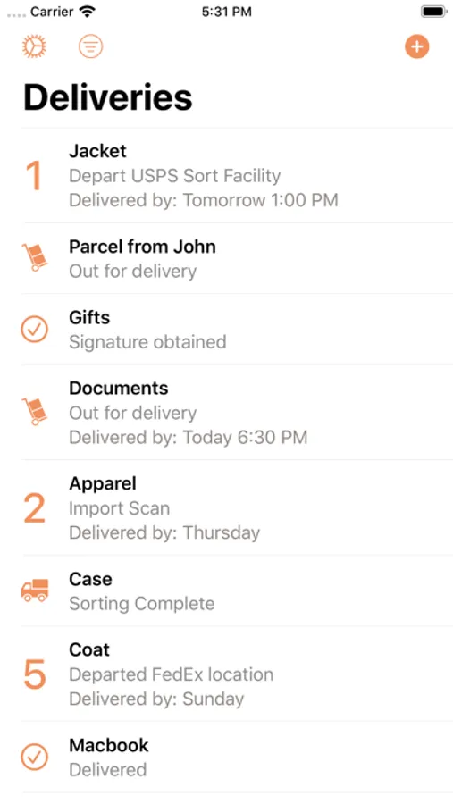 With our unique carrier recognition function, adding a new delivery is just a matter of seconds. Sometimes you won't even need to enter a tracking number, you can use a barcode scanner which is available right in the app.
