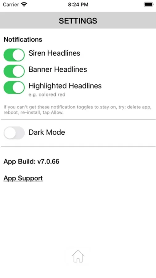 On first open, iOS will ask you to allow notifications. Tapping "Allow" results in alerts being sent to your phone whenever there is a siren, new banner or a highlighted headline (e.g. colored red.)
