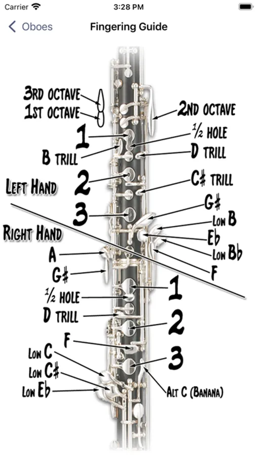 • All Woodwinds include visual guides to the key names and locations on the instrument to understand the fingering charts better.