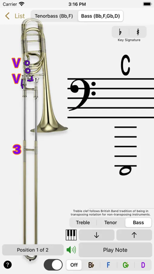 • Bb/F Tenorbass Trombone, Bb/F/Gb/D Bass Trombone, Euphonium and Baritone include Treble, Tenor and Bass clefs.