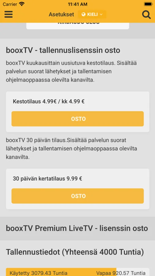 booxTV allows you to view recorded TV-shows from Finnish free-to-air channels over 4G and Wi-Fi by streaming from the service.