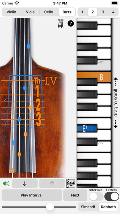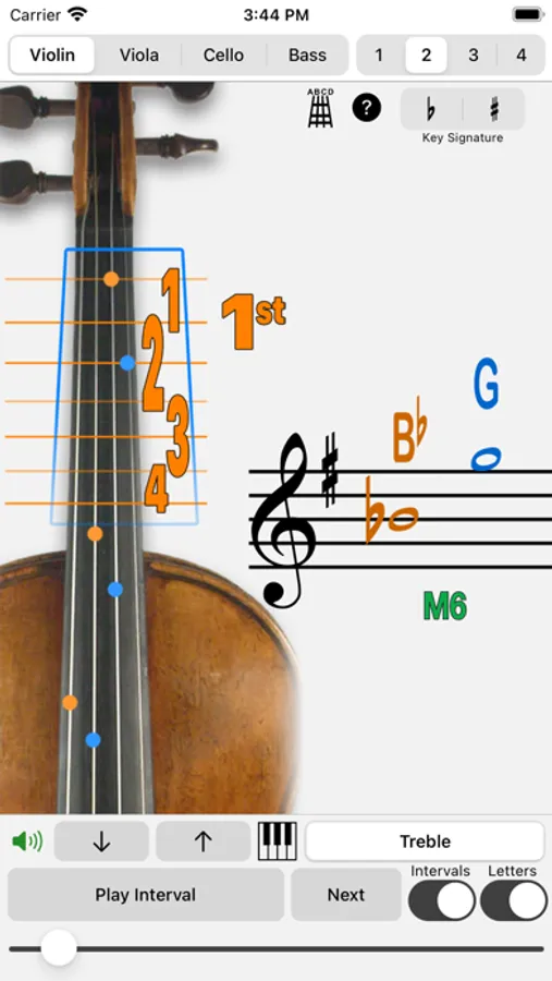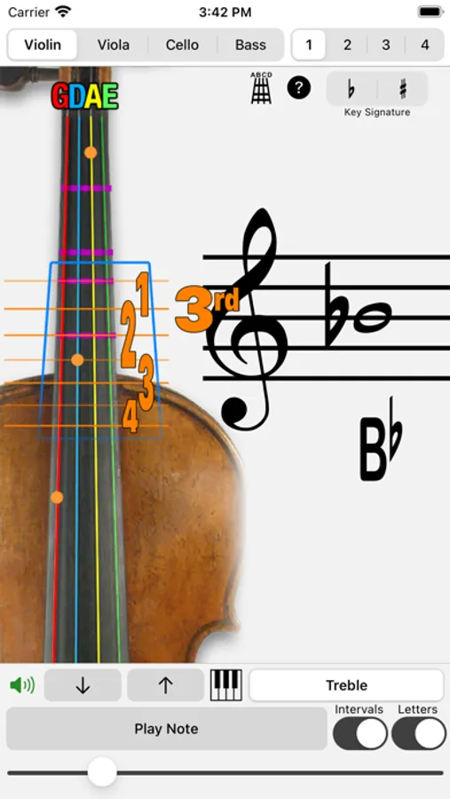 The highest rated and most comprehensive fingering guide available for Violin, Viola, Cello and Double Bass (Simandl and Rabbath positions). Includes double stops! Decide which hand position would be best for the interval or passage. Instantly switch between written note and piano key at the touch of a button.