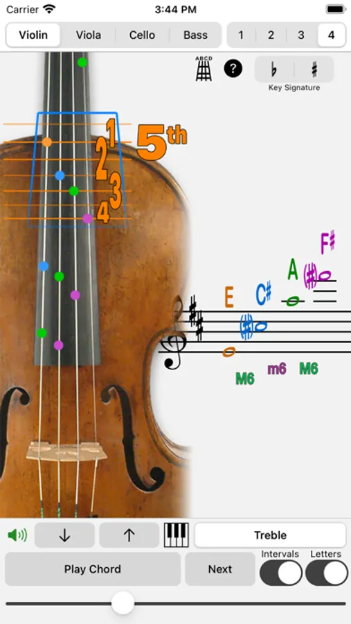 • Use the ‘Play' button to repeatedly hear the note or interval being displayed.