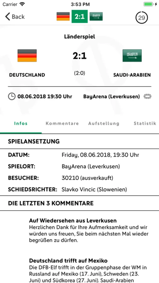 Fußball ist Begeisterung, ist Hingabe und Emotion. All dies kannst Du hautnah erleben – mit der offiziellen App des Deutschen Fußball-Bundes (DFB) die jetzt in neuem Gewand erstrahlt. Einfach installieren und alle News zu den Nationalmannschaften, den Wettbewerben, Ligen und vielen weiteren Aktivitäten des DFB landen immer blitzschnell auf Deinem Smartphone oder Tablet.