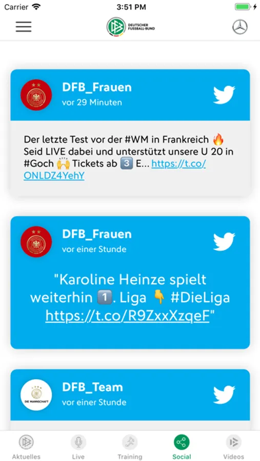 Die Fans des deutschen Fußballs sind jetzt noch dichter dran: an den Nationalmannschaften, an den Partien der besten deutschen Ligen, an den verschiedensten Fußball-Veranstaltungen. Ob aktuelle News, Liveticker oder Videobereich – mit der DFB-App bist Du in Text, Bild und Video immer auf dem neusten Stand. Ob Team-Details, aktuelle Magazine oder das spannende Tippspiel – die ganze Welt des Fußballs passt jetzt in Deine Hosentasche.