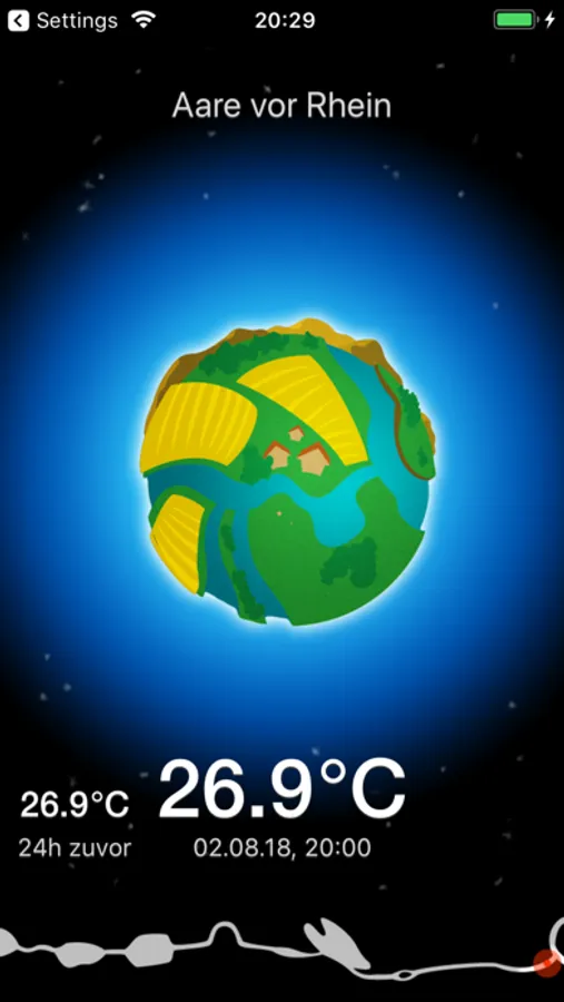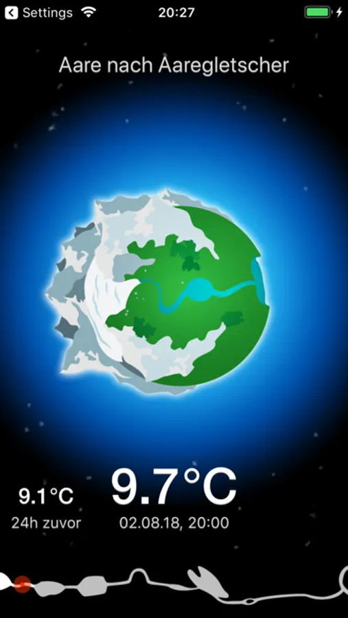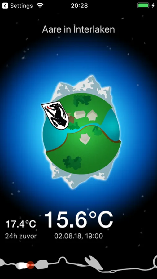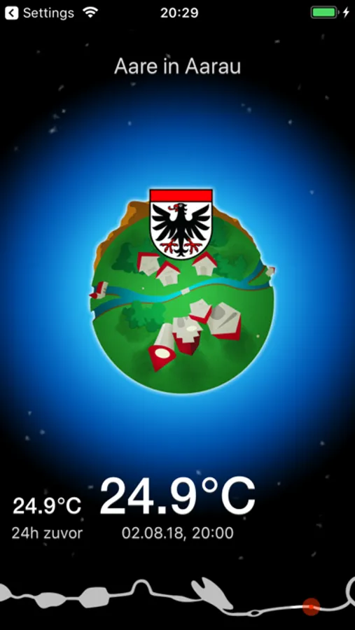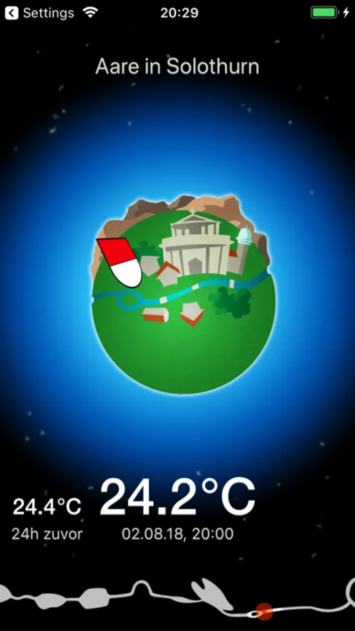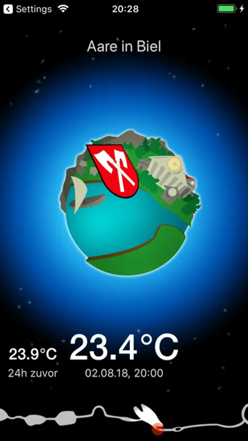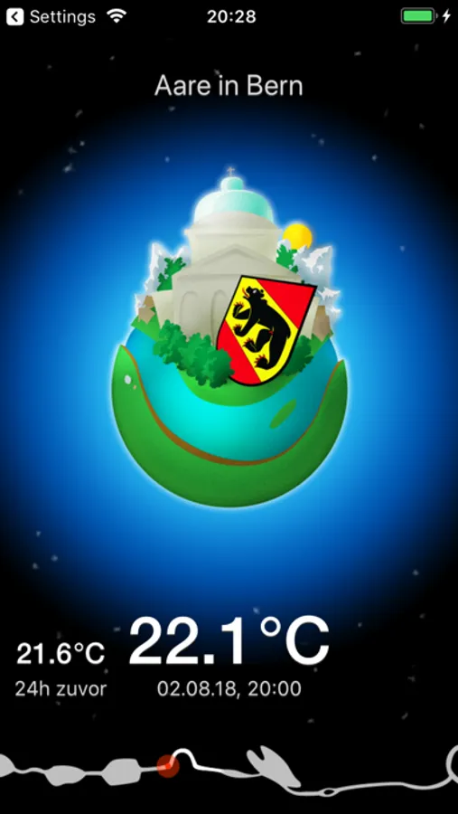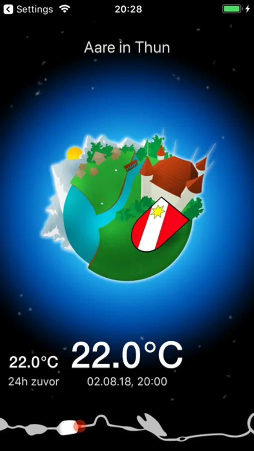 Aare App zeigt die aktuelle Temperatur der Aare an. Vom Aaregletscher über Interlaken, Thun, Bern, Biel, Solothurn, Aarau bis ins Wasserschloss der Schweiz. Schön und schnell.