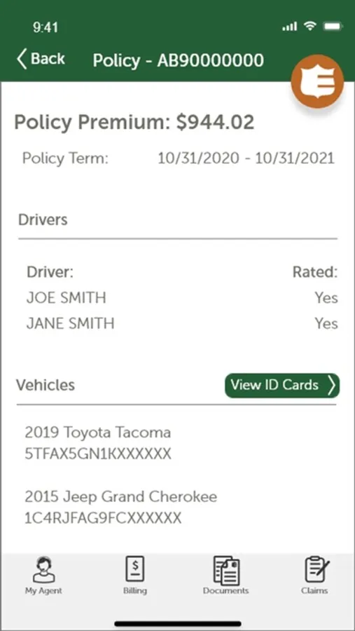 • View, save and send Proof of Insurance, Auto ID Card
