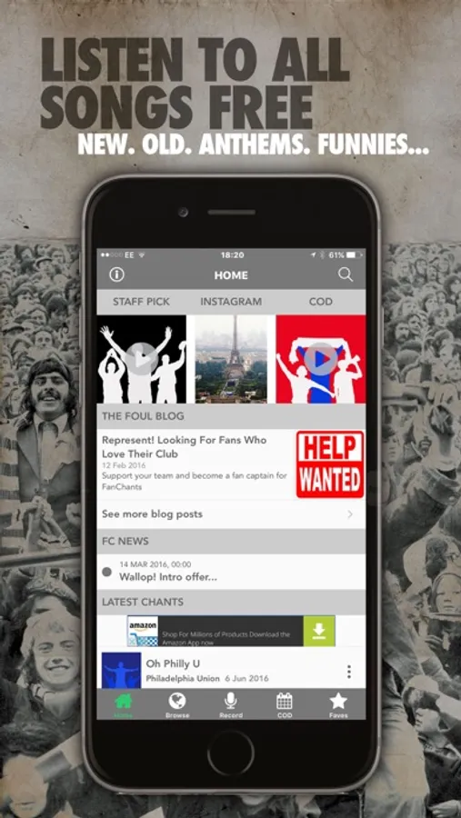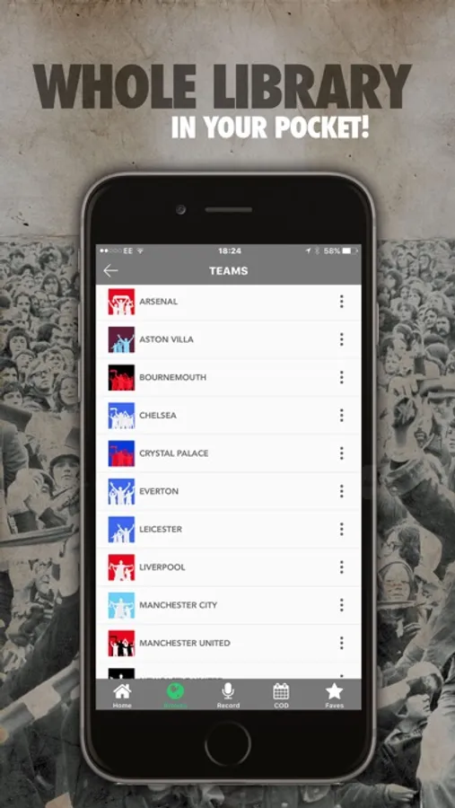Real songs to play through speakers, send to mates and use as ringtones. Receive alerts for new chants and use the in-built recording feature to submit latest songs.