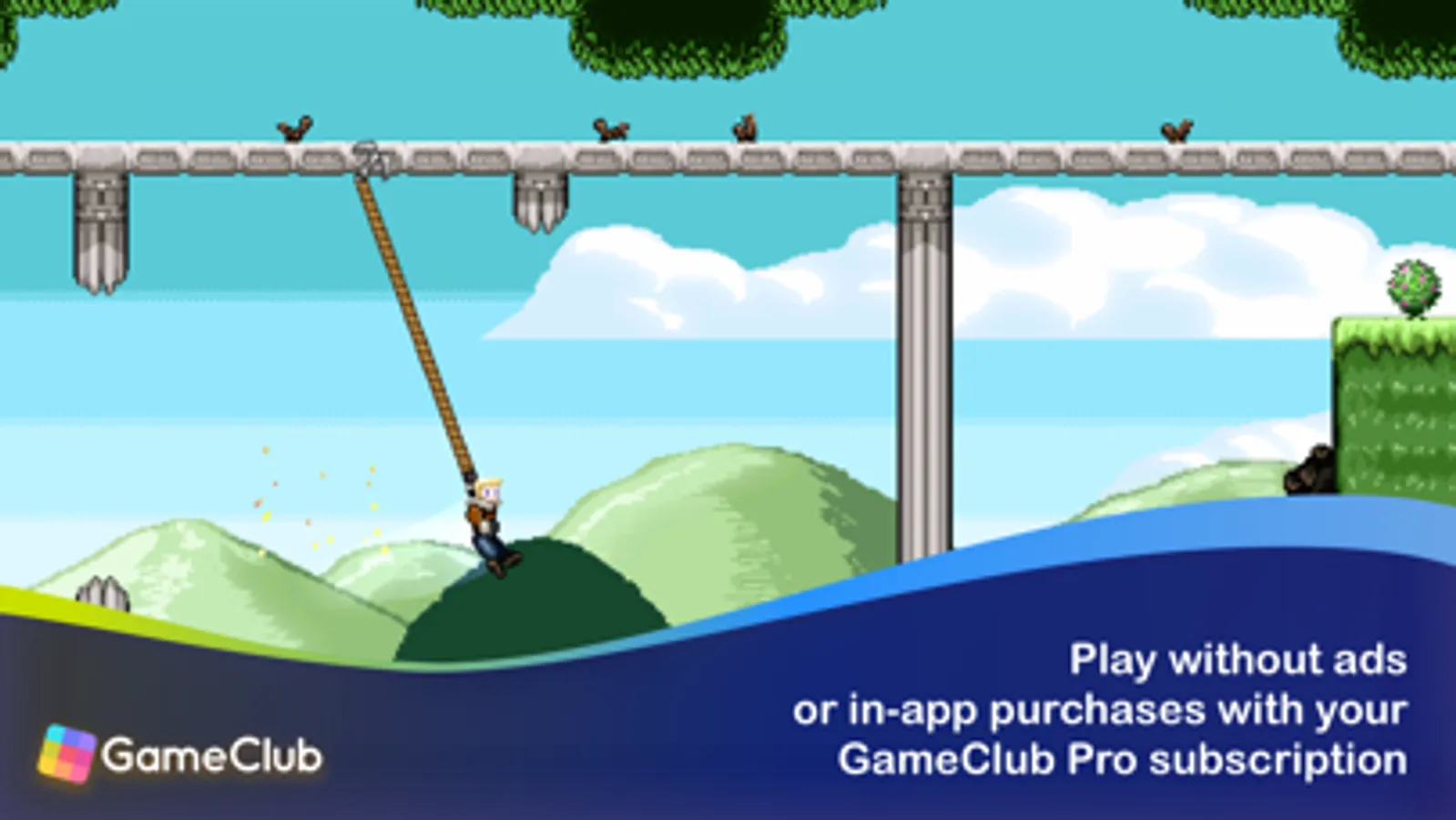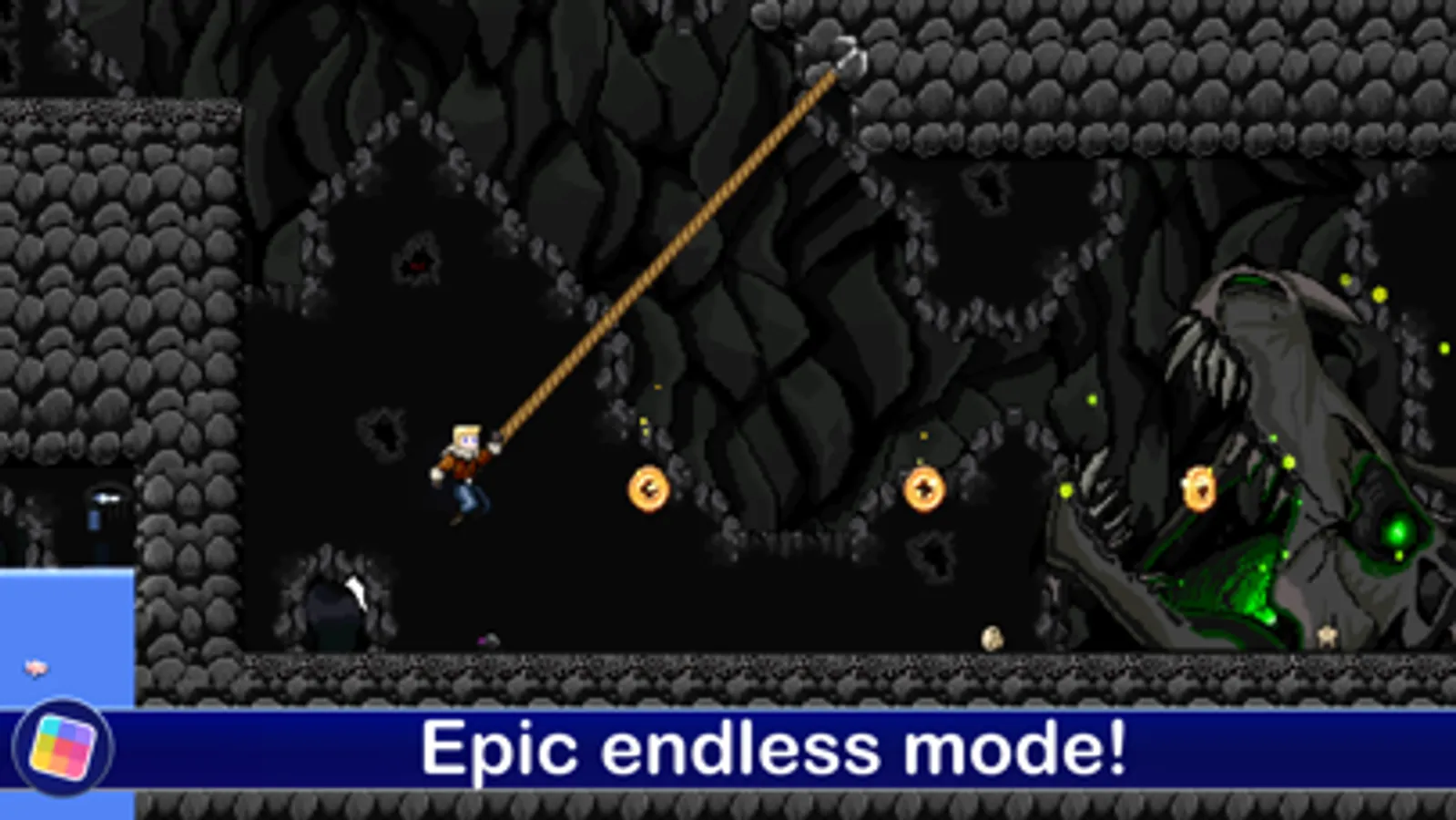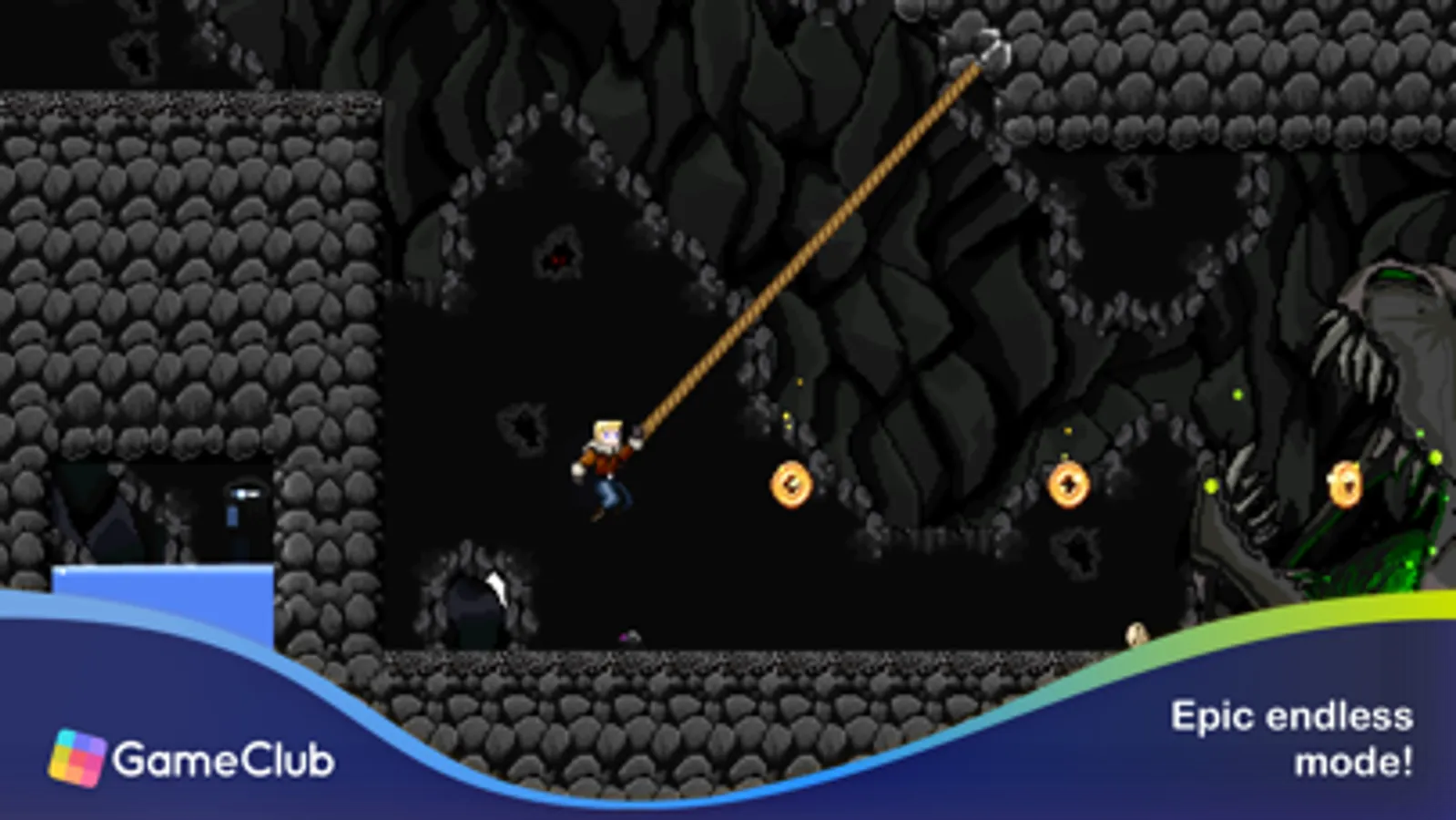- Awesome Upgrades: Spend your coins in the shop to improve your hook, upgrade your rocket boots, or even pick up a handy pedometer!