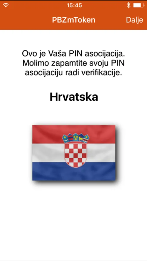 After the installation of the PBZmToken application, it must be activated by entering the identification and activation code which is assigned to the user by PBZ in the Bank's branch offices or via the PBZ365@NET services. After entering the identification and activation code, the user sets the PIN for further use of the application, whereby a PIN association is created, consisting from the state name and its flag display. The PIN association is help when starting your PBZmTokena, as a reminder to your PIN defined at application activation.