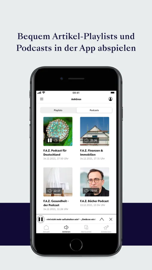 - Audio: Lassen Sie sich Artikel vorlesen, hören sie die F.A.Z-Podcasts in der App oder nutzen Sie die App über CarPlay direkt in Ihrem Auto. Erstellen Sie eine Playlist, indem Sie Artikel auf den Merkzettel setzen und sich die gemerkten Artikel anschließend vorlesen lassen