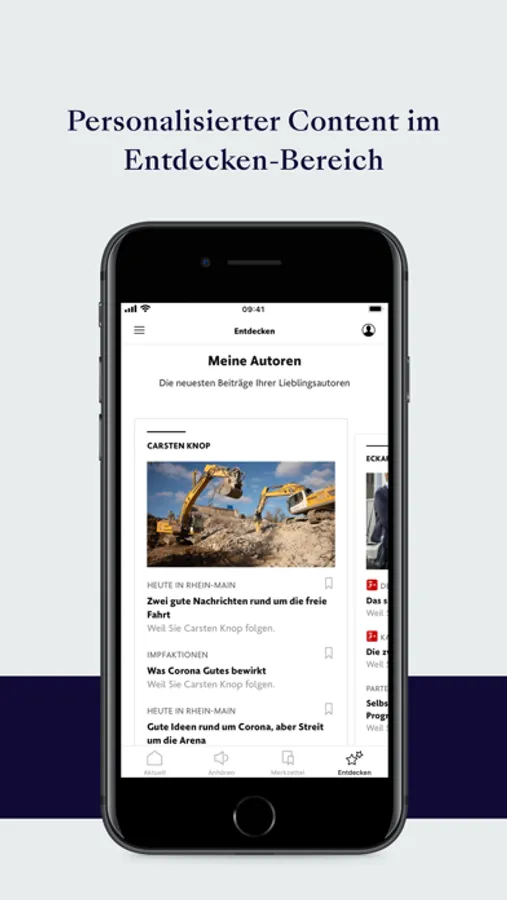 - Entdecken-Bereich: Ihr persönlicher Bereich mit speziell für Sie zusammengestellten Inhalten auf Basis Ihrer Lesegewohnheiten. Die besten Artikel, die spannendsten Reportagen, die präzisesten Analysen – für Sie dynamisch zusammengestellt und immer aktuell