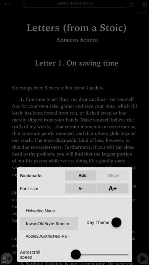 Find serenity, productivity and well being with the philosophy practiced by Roman emperors, world rulers and today's greatest creative minds and entrepreneurs such as multimillionaire Kevin Rose or best selling authors Tim Ferriss or Ryan Holiday. 8 major works of the Stoic philosophy are bundled in an unique app with automatic Text-to-Voice synthesis, quote bookmarking and page autoscrolling for hands-free reading.