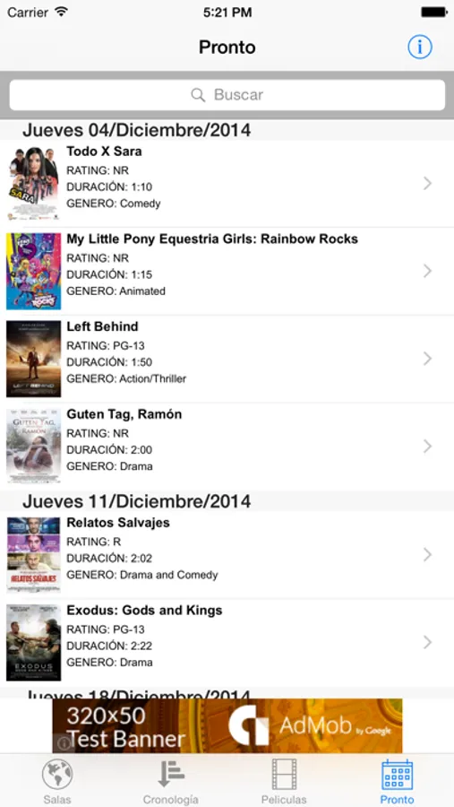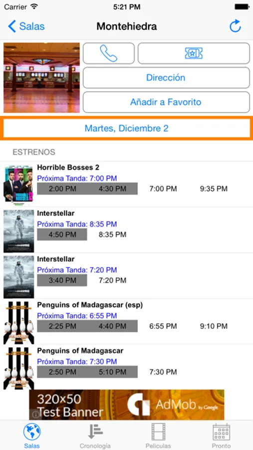 *Cronología te deja saber que película esta próxima a empezar en tu sala favorita.