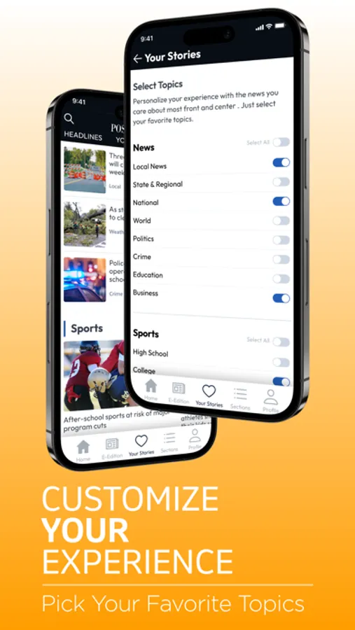 * Your Stories – personalize your experience by selecting the local news topics that matter most to you