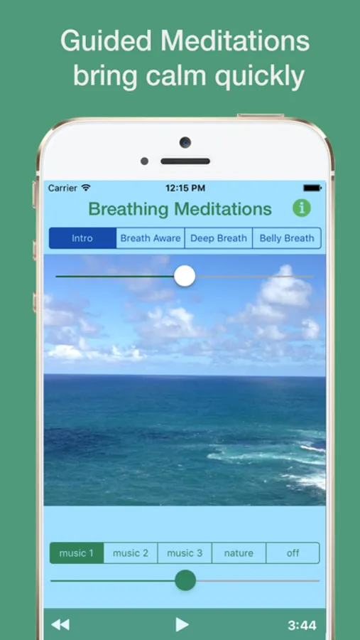 -- Option of voice alone or music or nature sounds for the background of the meditations