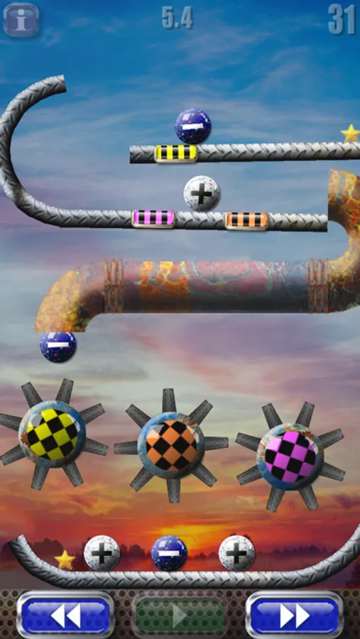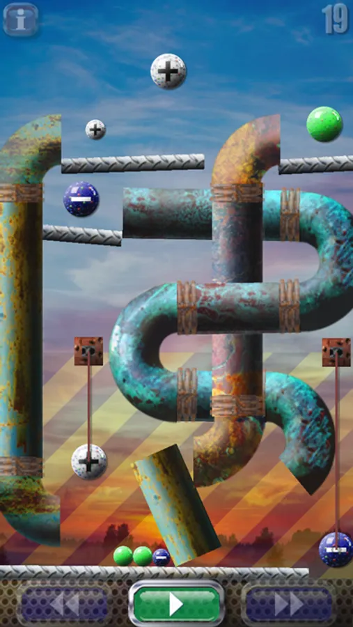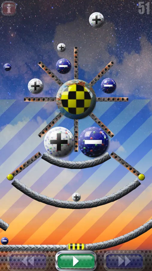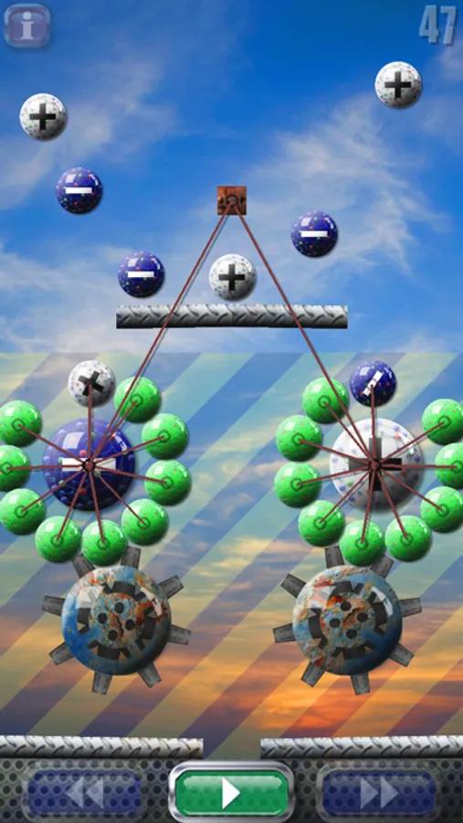 Your goal is to destroy all of the positive and negative particle balls. Place the particle balls on the screen, press play and watch them come to life! Navigate them through pipes, gears, sensors, bombs, springboards, pendulums, seesaws and more to make them collide.