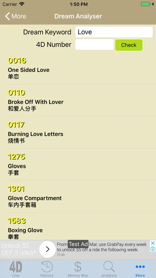 7. Dream Analysis : You can enter a keyword about your dream and search its related 4D, or vice-versa.