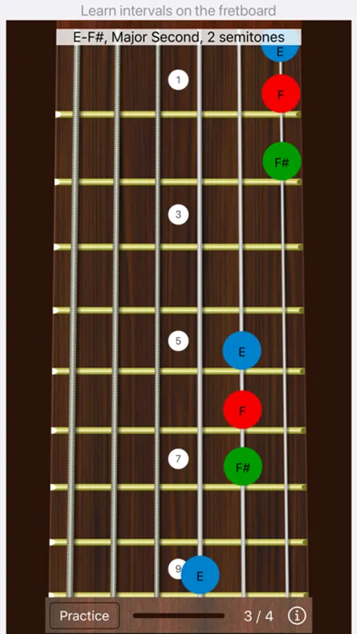 This app helps you to identify the intervals and at the same time how to find them on the guitar.