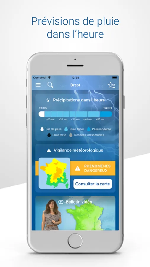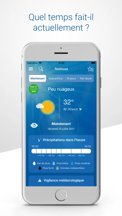 - Prévision de pluie dans l'heure (selon couverture territoriale)