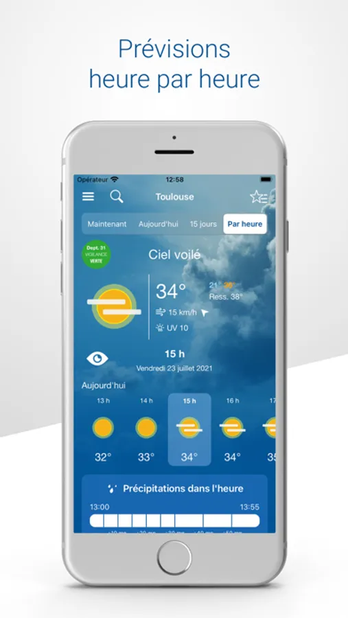 INDISPENSABLES : la prévision de pluie dans l’heure sur votre commune, la vigilance météo, VOS observations en temps réel, l’animation radar...