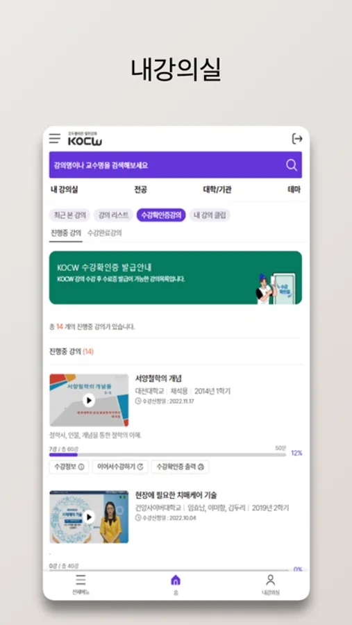 세상의 다양한 지식을 한 곳에 모아 손쉽게 활용하는 KOCW를 소개합니다.