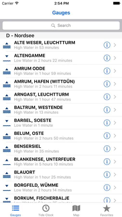 >tripanion_Gezeiten delivers Tide Predictions for the next six days in terms of classical Tide Clock, Lists, and Map.