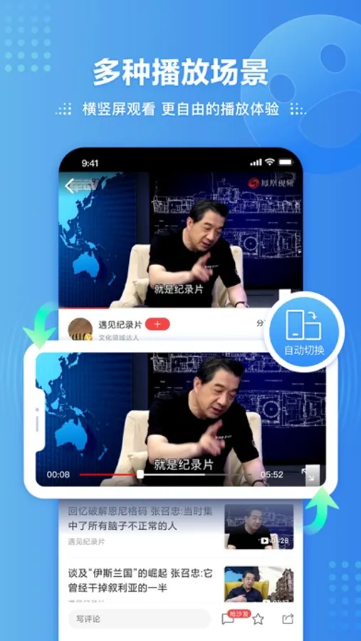 横竖屏观看,更自由的播放体验,精选小视频样式,个性化推荐,满足多样式的阅读体验
