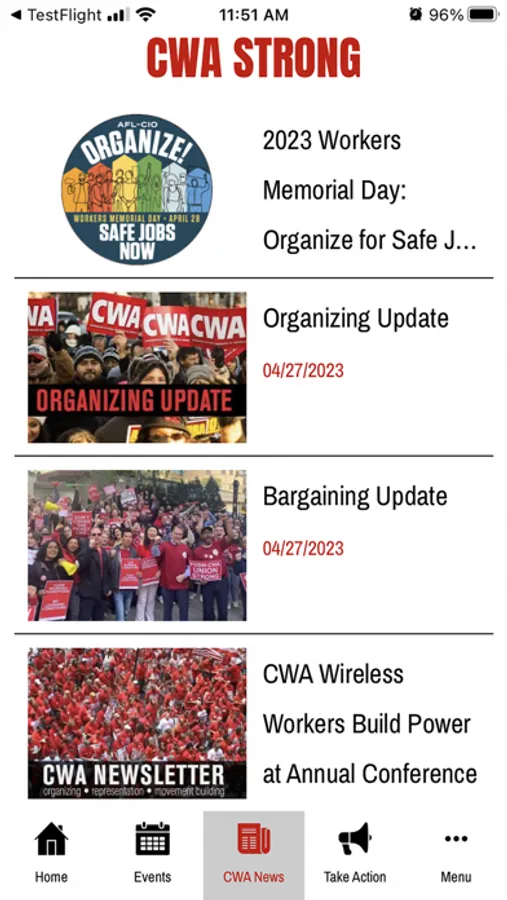When news breaks, you want to know about it and know what's coming next. The CWA STRONG app for iPhone brings the latest union news, events, photos and opportunities for action from the Communications Workers of America right to you. You'll also be able to share photos from events that you attend with other CWA members.