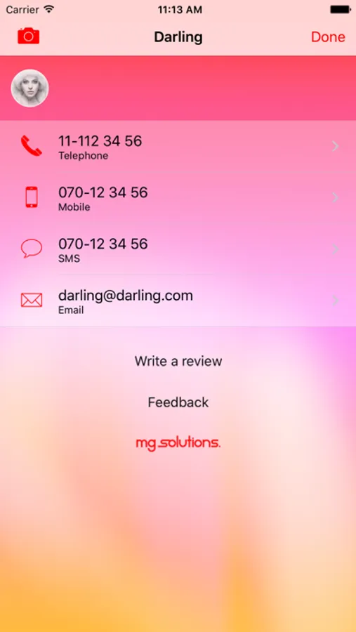 Call or send an SMS or email directly to your darling by pressing the icon "Darling".
