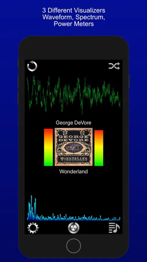 Sonance plays music that is on your device, and displays waveform and audio spectrum visualizations, plus power level meters. You can see the beat !