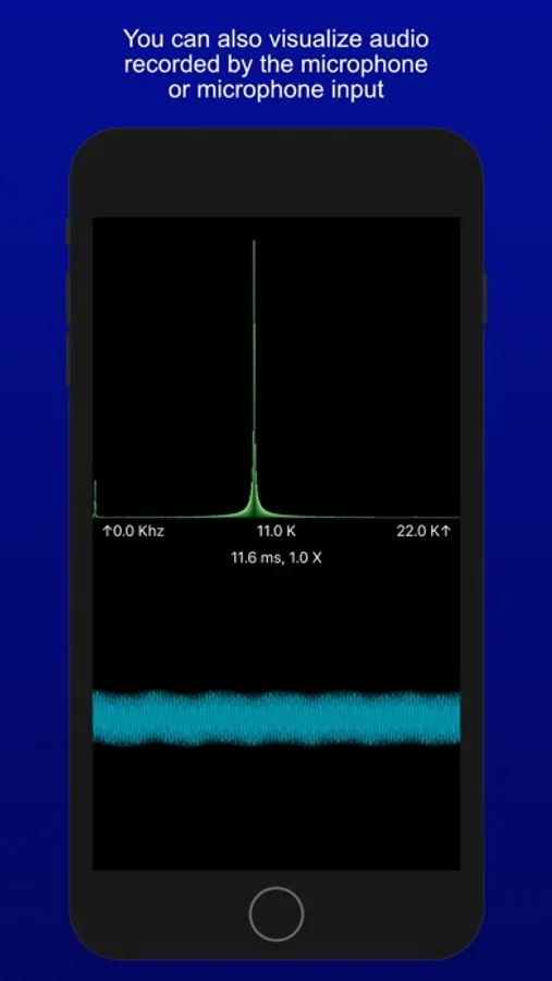 The audio input signal is displayed in the lower view as a waveform and the spectrum is displayed in the upper view as bars indicating the strength of that frequency within the audio input signal.