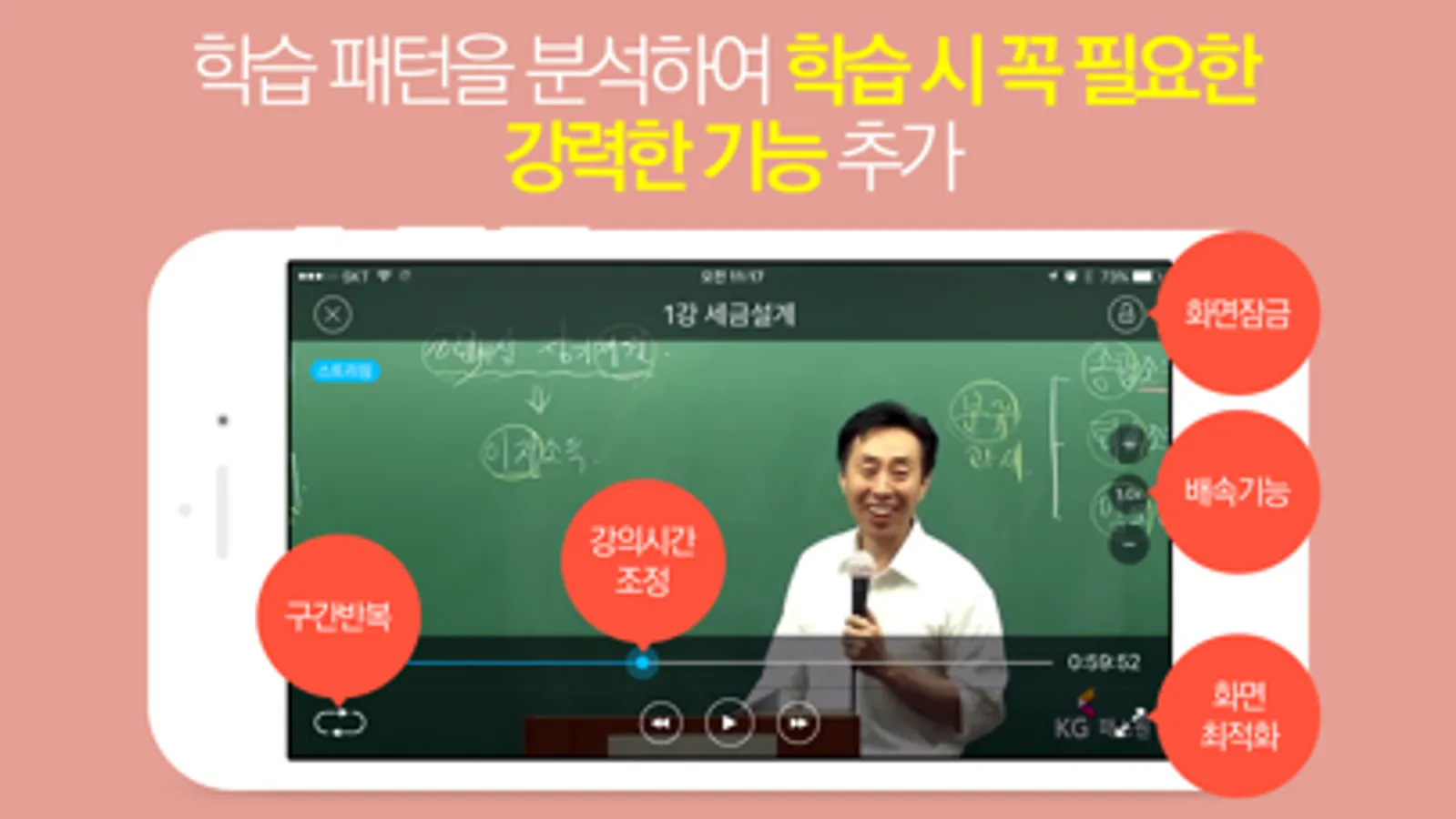 - 강의실에서 실강을 듣는 듯한 HD급 화질의 현장감 넘치는 강의를 느껴보세요! 눈의 피로는 적게, 판서는 또렷하게, 학습 효울을 높여드립니다.