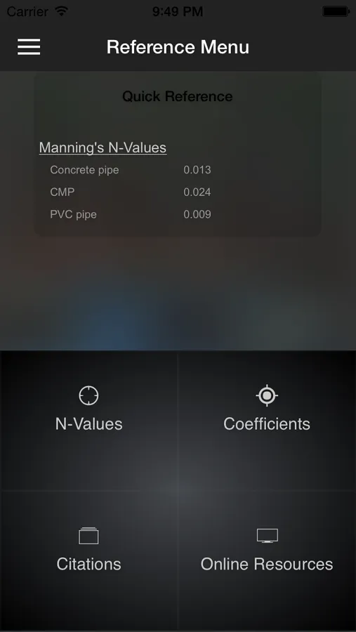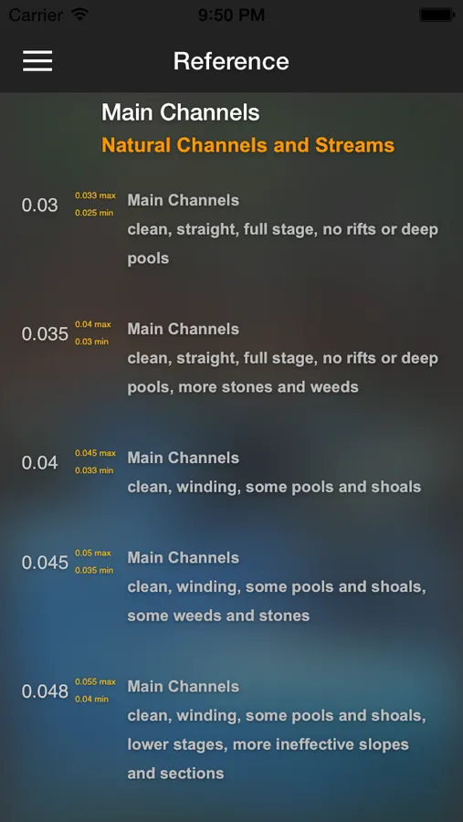6. Comprehensive look up table of over 70 manning's n-values for various materials in various conditions, and orifice coefficients