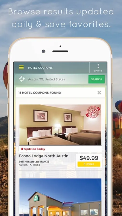 All those big travel websites provide the same rate – but what if you could get one even lower? With HotelCoupons you get access to the lowest possible rates for hotels nationwide by using a walk-in coupon. Hoteliers update these rates daily, so you can be sure to get the best deal available. Browse hotels nearby or search for hotels in your next destination using this sleek app.