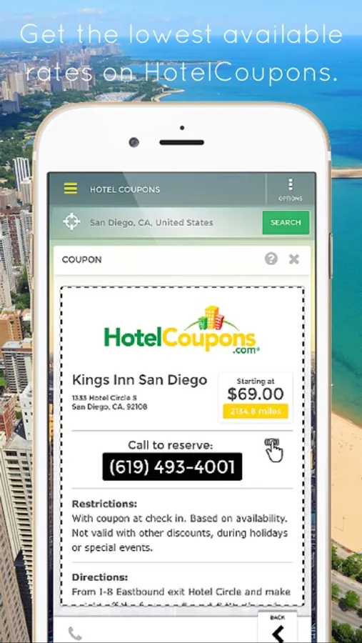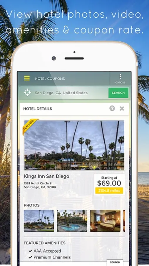 View property photos, check for available amenities and watch a video about the property. HotelCoupons works seamlessly with your favorite navigation app, so you can view the property location and get directions the way you want them. You can clip your favorite coupons to easily access them in the "My Coupons" section, plus the app keeps track of properties you recently viewed. To check for hotel room availability, click to call the hotel directly from the app. It has never been easier to access the cheapest rates on hotels and motels you love!