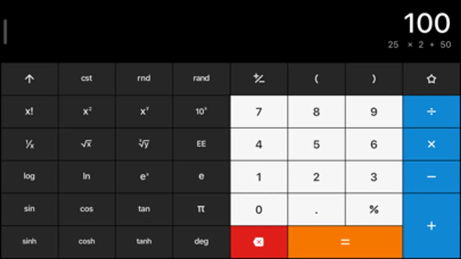 Rotate your device into landscape mode to gain access to common scientific functions.