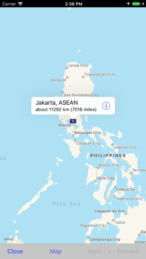 Select a flag and see the capital city on a map, and how far away you are. Wikipedia info is just a touch away.