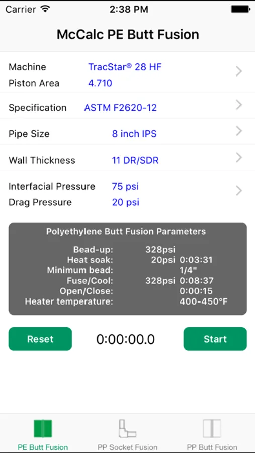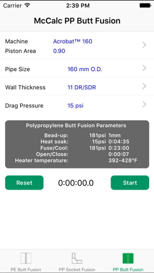 McCalc takes the guesswork out of HDPE and Polypropylene pipe fusion. By selecting your McElroy fusion machine and entering your pipe size and pressure requirements, the recommended theoretical gauge pressure may be calculated.
