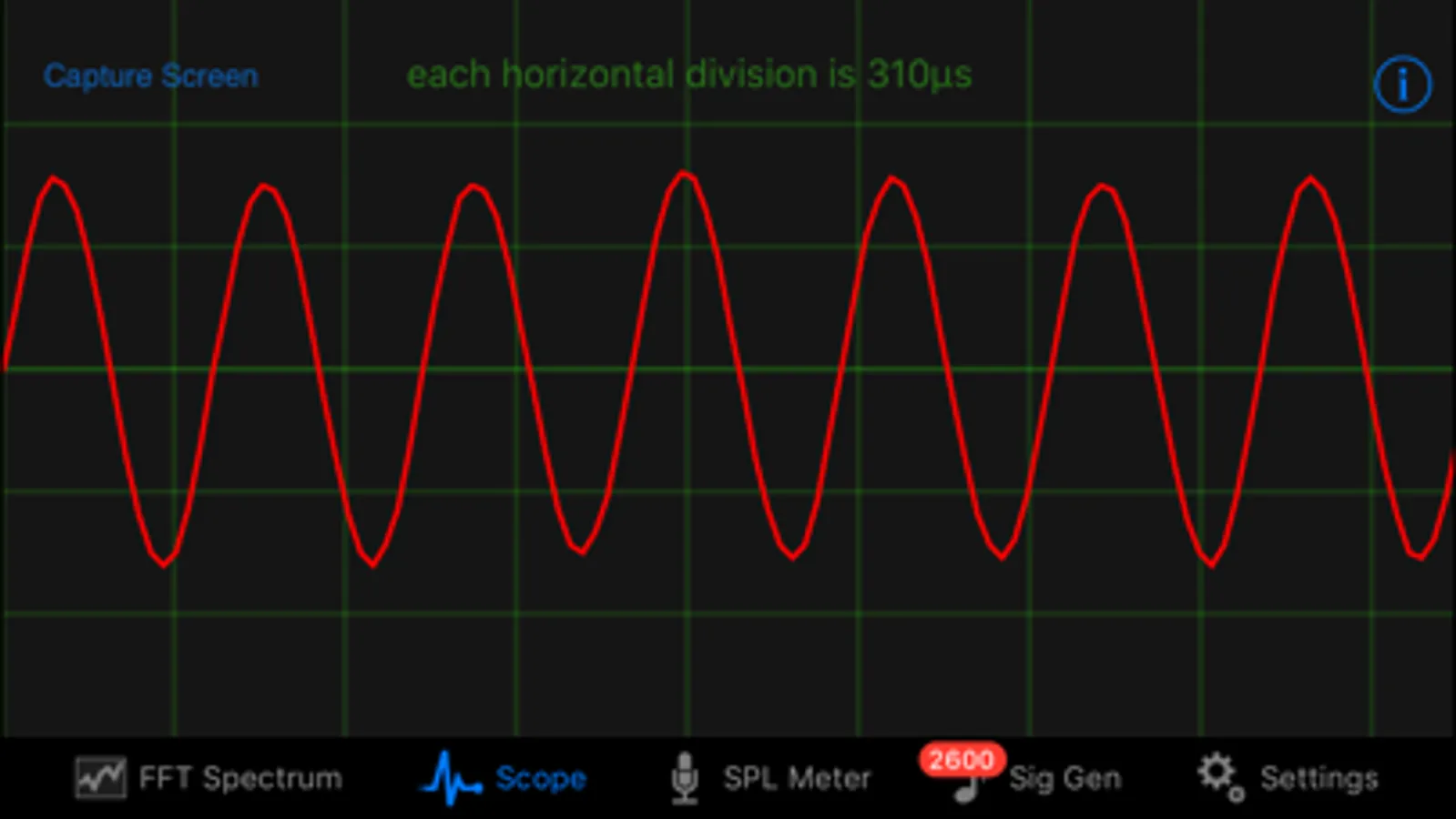 The display of the Scope can be adjusted easily using pinch gestures in both horizontal and vertical directions. Zero crossing detection of the waveform provides a smooth display and can be set to either positive or negative direction zero crossing.