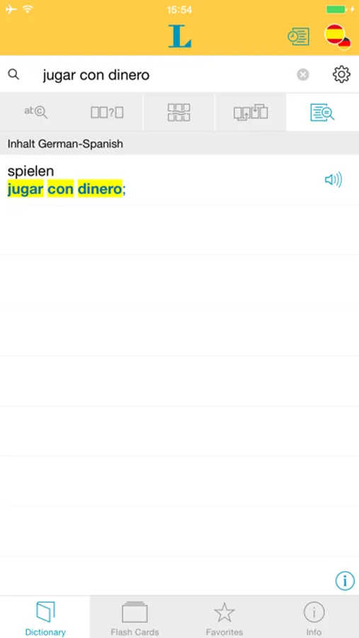 365,000 headwords, phrases and translations. Spanish - German. German - Spanish. Use offline – even abroad. The ideal dictionary app for work, study, travel and everyday situations. Available with free vocabulary trainer. Millions of users can't be wrong! From the No. 1 dictionary publisher.*