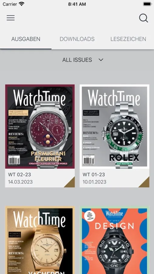 Use this free WatchTime app to preview, organize, and purchase individual issues.