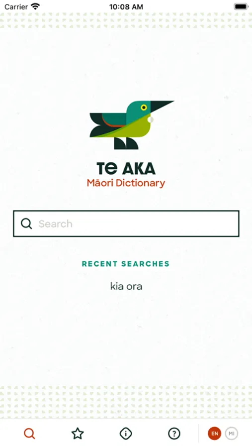 Te Aka is a Māori language dictionary that is easy to use by searching for Māori or English words. It includes the ability to filter search results, and to save definitions to a Favourites list. There are currently over 24,000 Māori headword entries in the database, which is being added to over time. An offline dictionary has also been included when internet connectivity is not available.