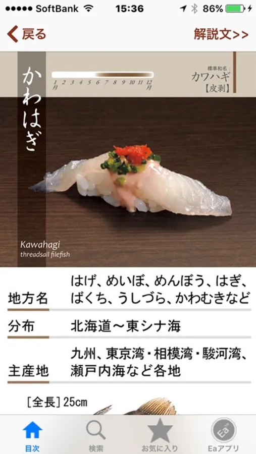 1貫1貫を丁寧に撮影した握りの写真、素材の魚についての解説・薀蓄、旬バロメーター、姿写真、主産地、英語名など、すし通のための完璧なデータがつまった、すしを知るためのバイブル。