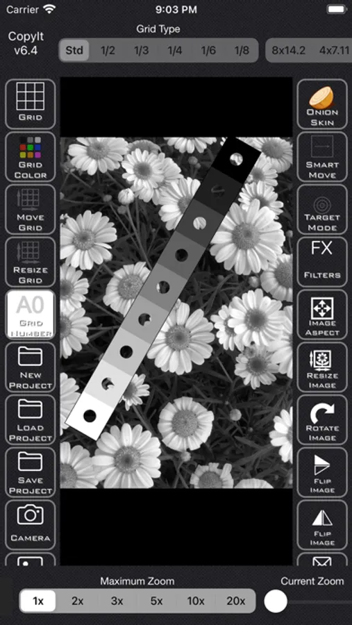 Using CopyIt as your reference object, it saves you from having to print your photos and ruin them by drawing grids over them, but unlike a real photo, it gives you the ability to zoom into the fine details. With a pencil, you then draw up a grid with the same number of squares using a separate medium, such as paper or canvas. Working square by square, you CopyIt!