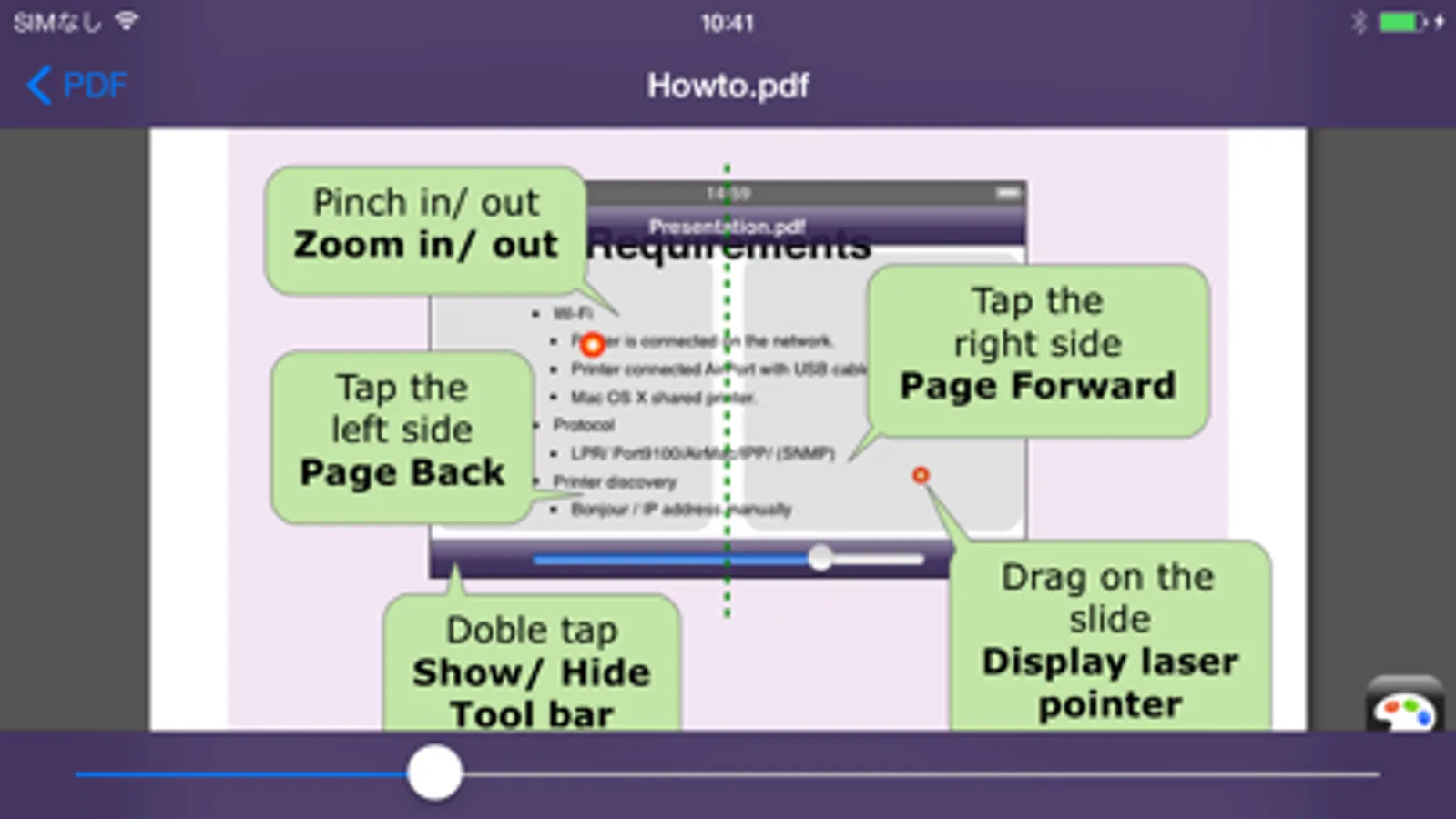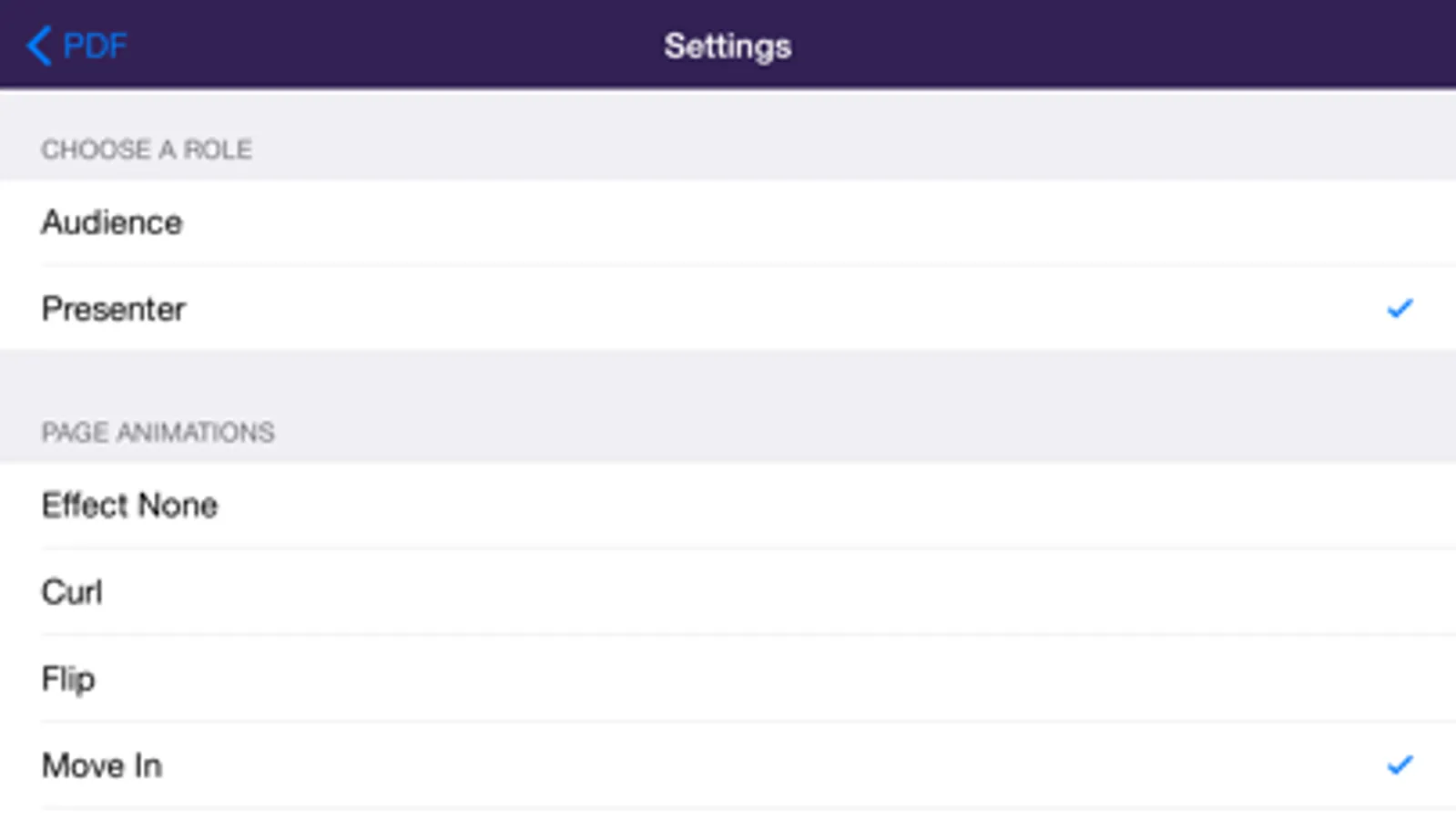 The presenter uses iPhone/iPad as a remote controller and controls the audience’s documents on the iPhone/iPad.