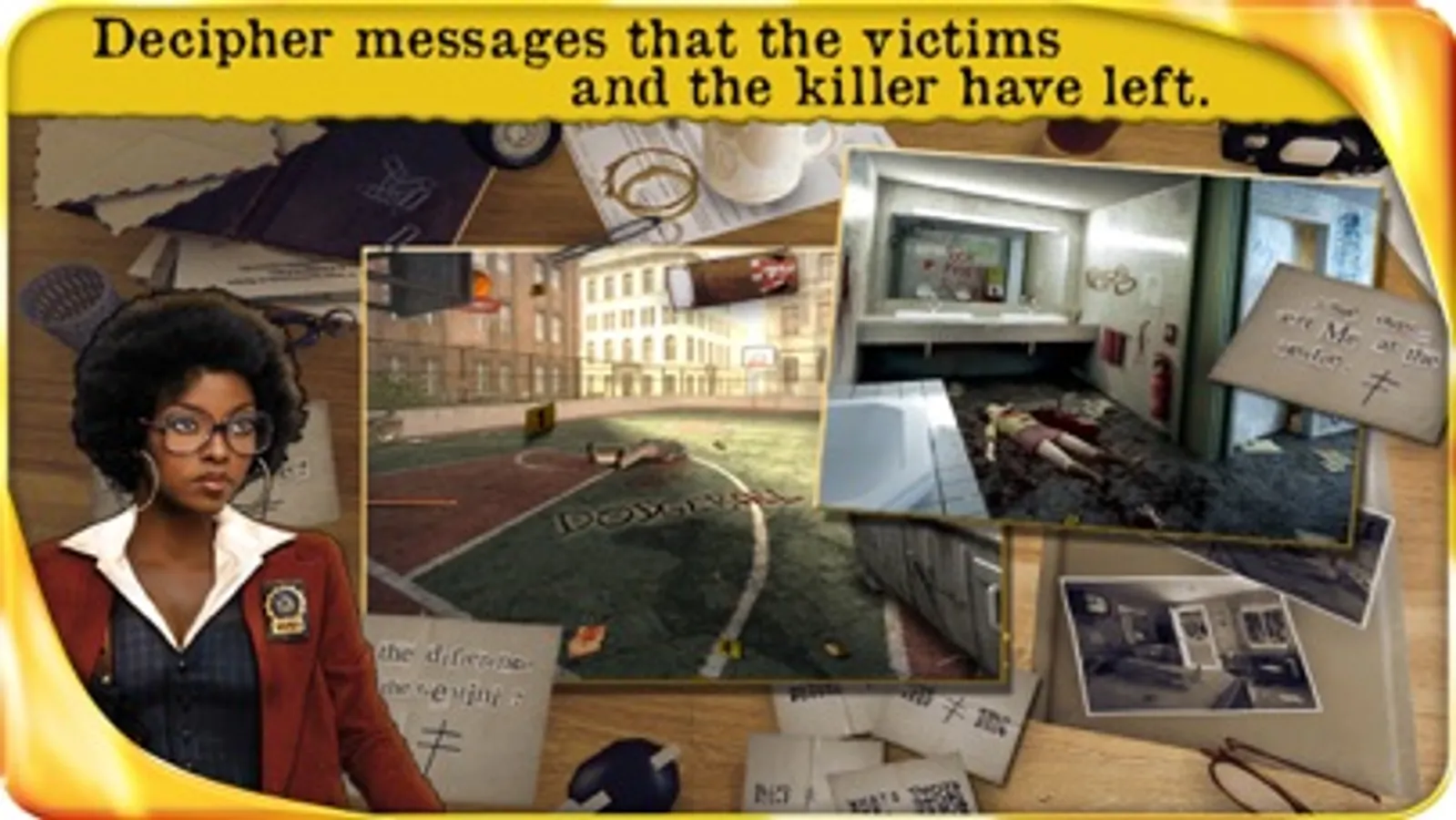 Prove you are a good profiler to your NYPD boss! Find all the clues on the crime scenes, decipher the secret code used by the killer in the messages left on his victims, and finally, discover where the serial killer is hiding!