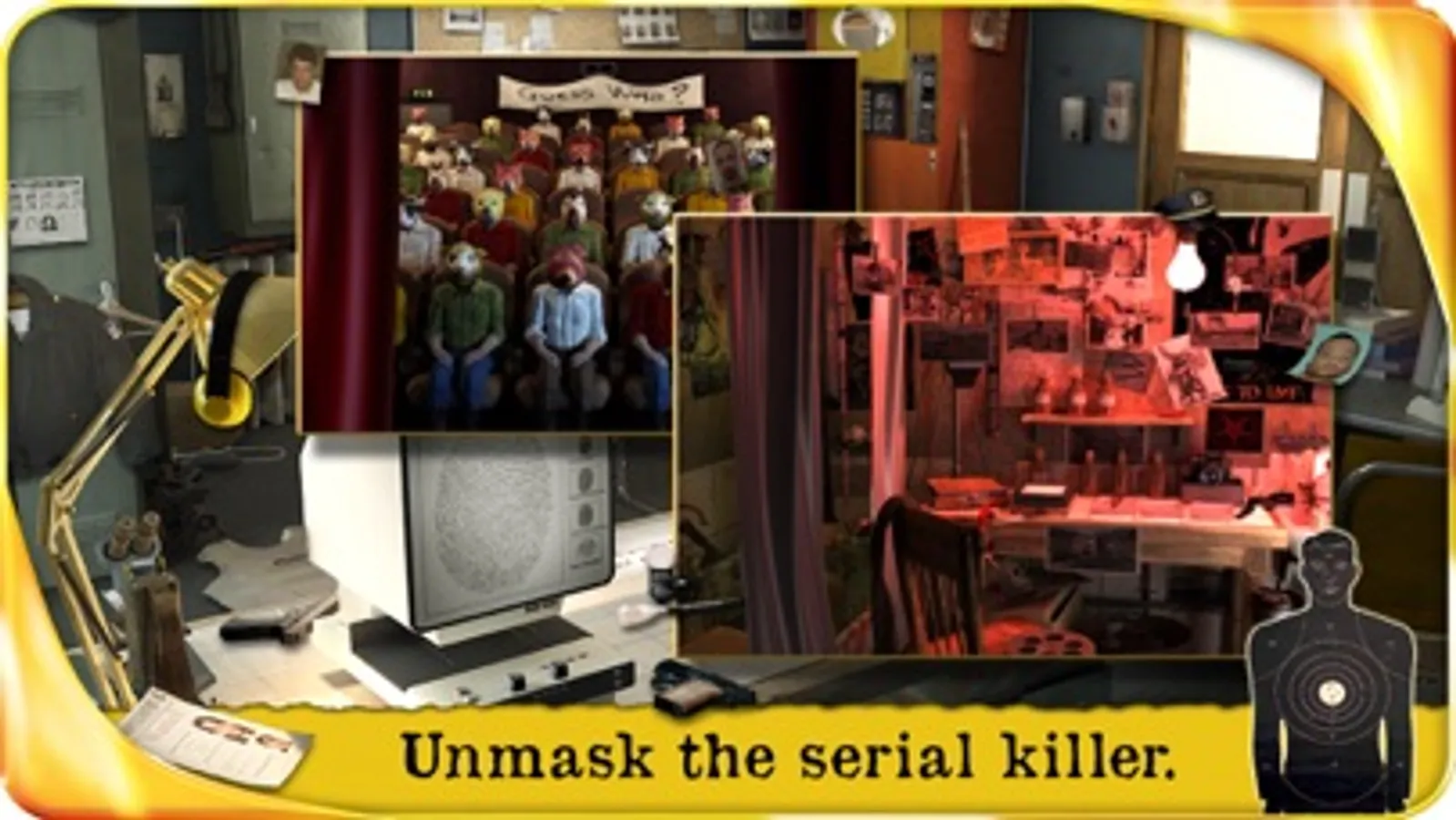 Examine the crime scenes, find clues and discover the serial killer identity. Will you be able to find him on time?