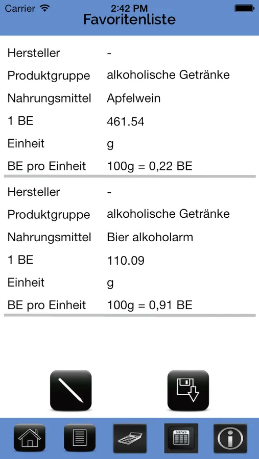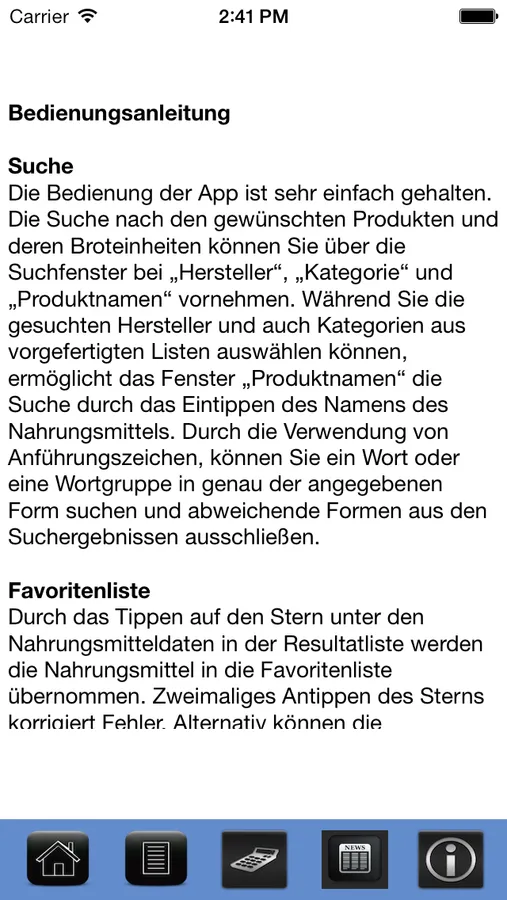Die Broteinheiten-App enthält folgende Funktionen: