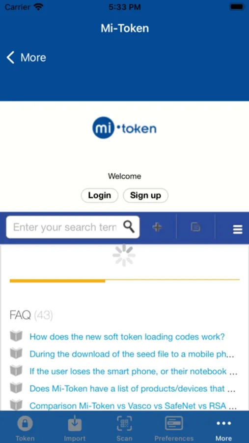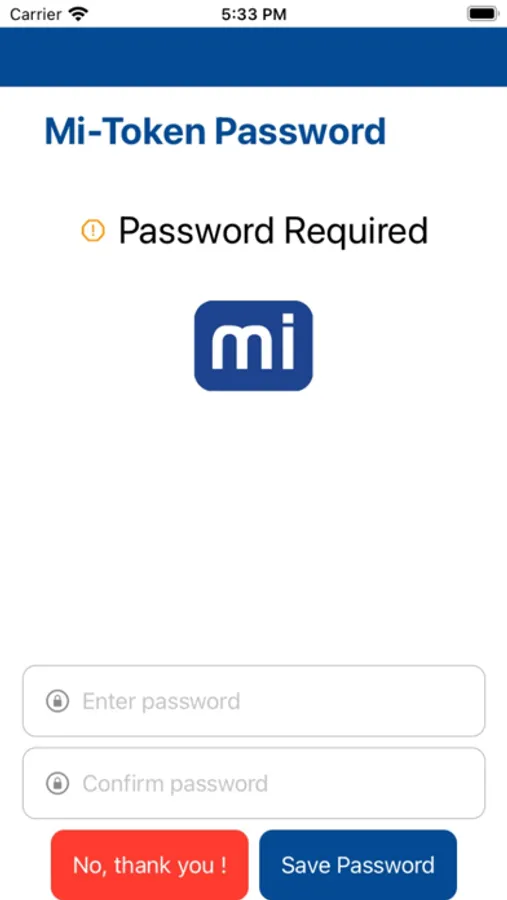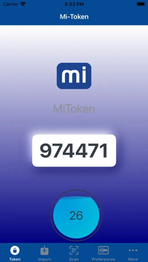 The Mi-Token Soft-Token application provides customers with the capability of deploying soft-tokens to a multitude of users rapidly, securely and cost-effectively. The application provides a preview of its functionality and styling when not loaded with data, and produces a useful OTP (One-Time Password) when loaded.